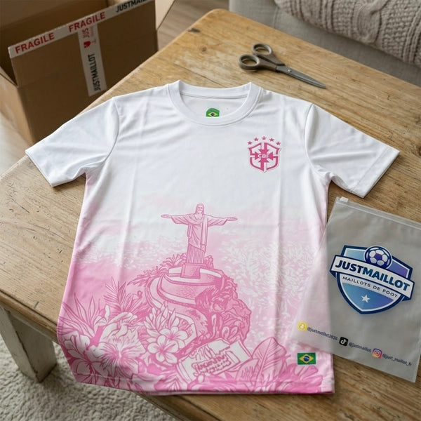 Brésil – Maillot Pré-Match 25/26 – Blanc & Rose